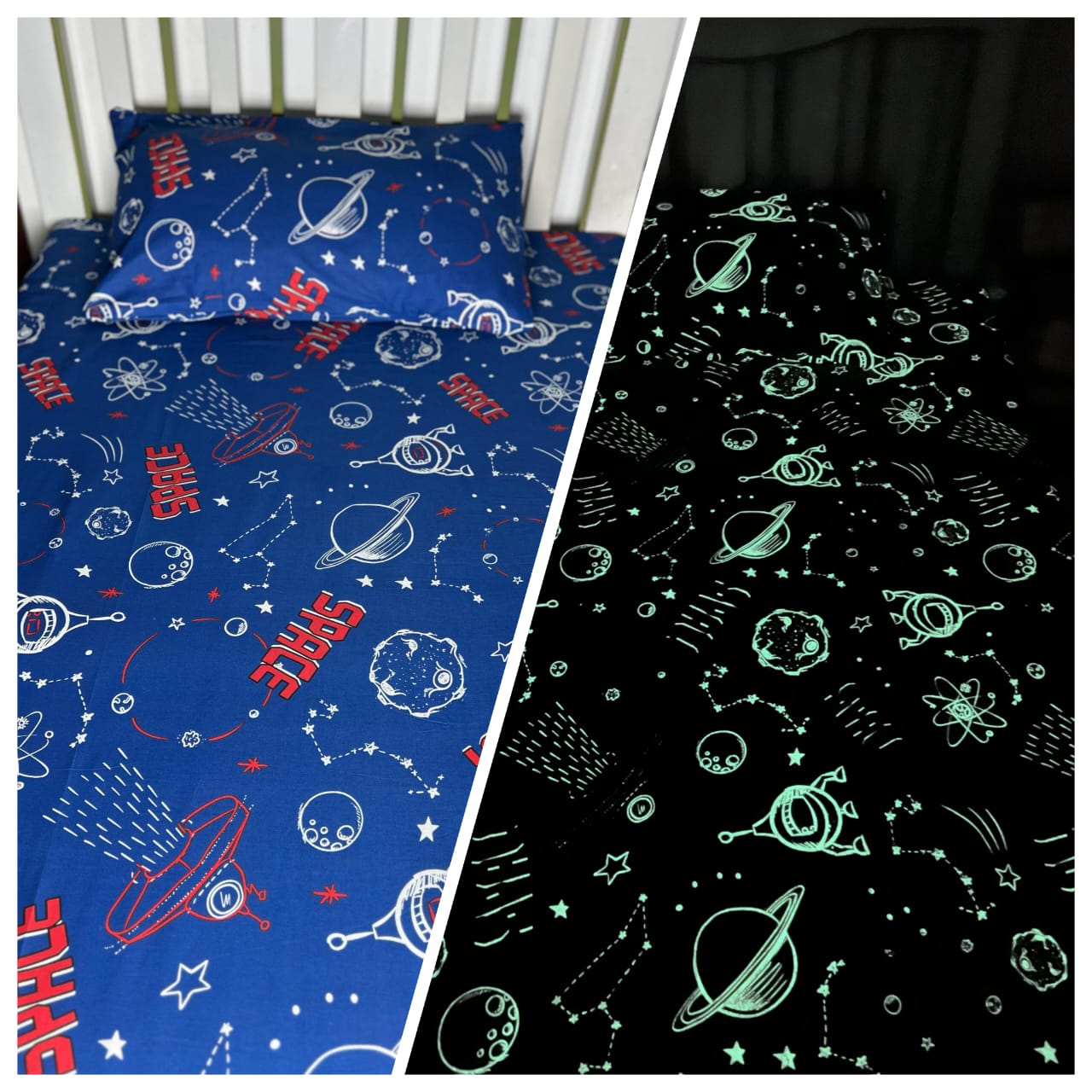Add a touch of magic and fun to your bedroom with our Glow-in-the-Dark  Bed Sheets. These high-quality, 100% cotton bed sheets come in vibrant, multicolored designs, perfect for kids and anyone who loves a bit of whimsy. Not only do they offer superior comfort, but they also feature an exciting glow-in-the-dark function that creates a magical atmosphere when the lights go out.
